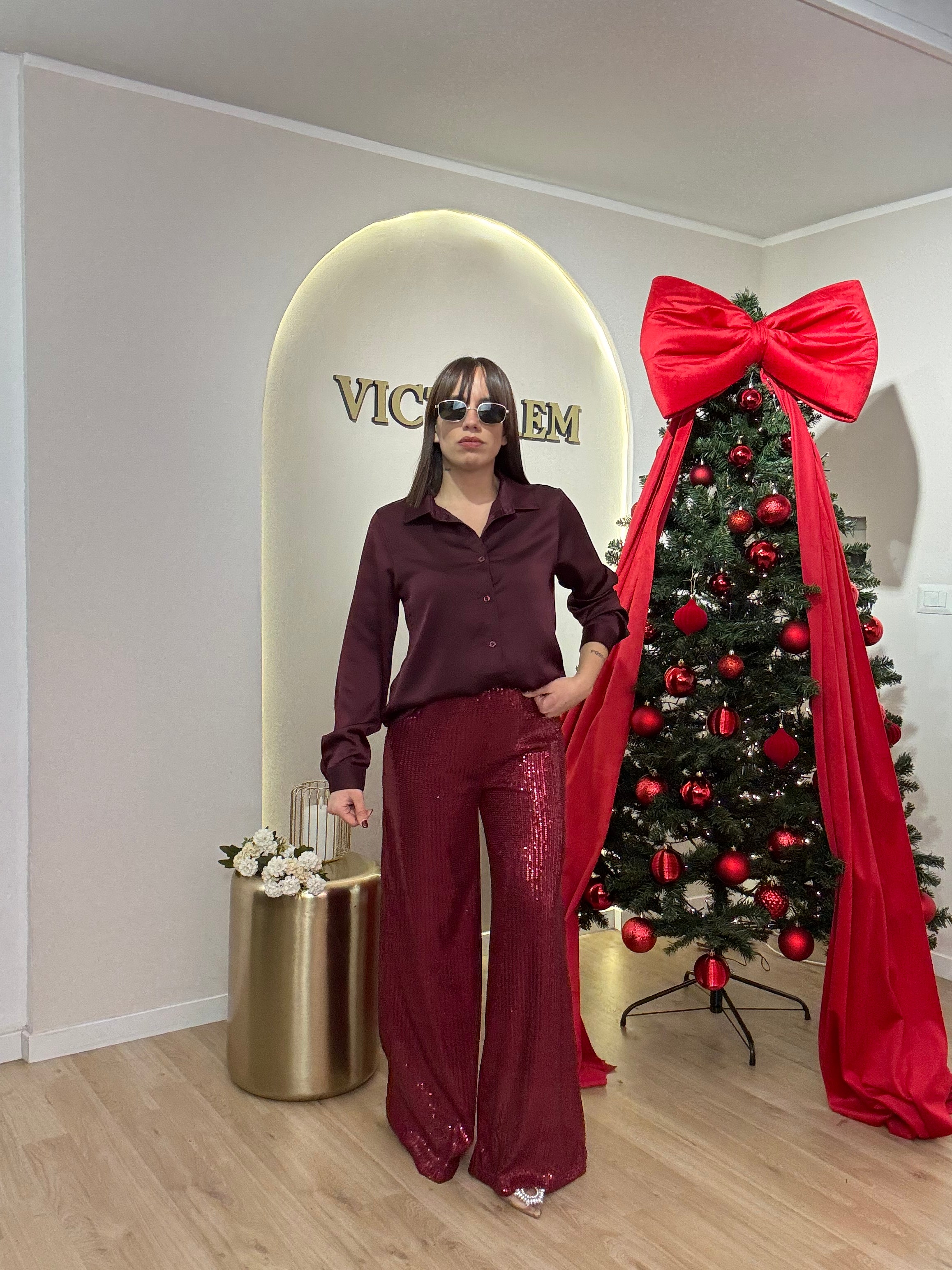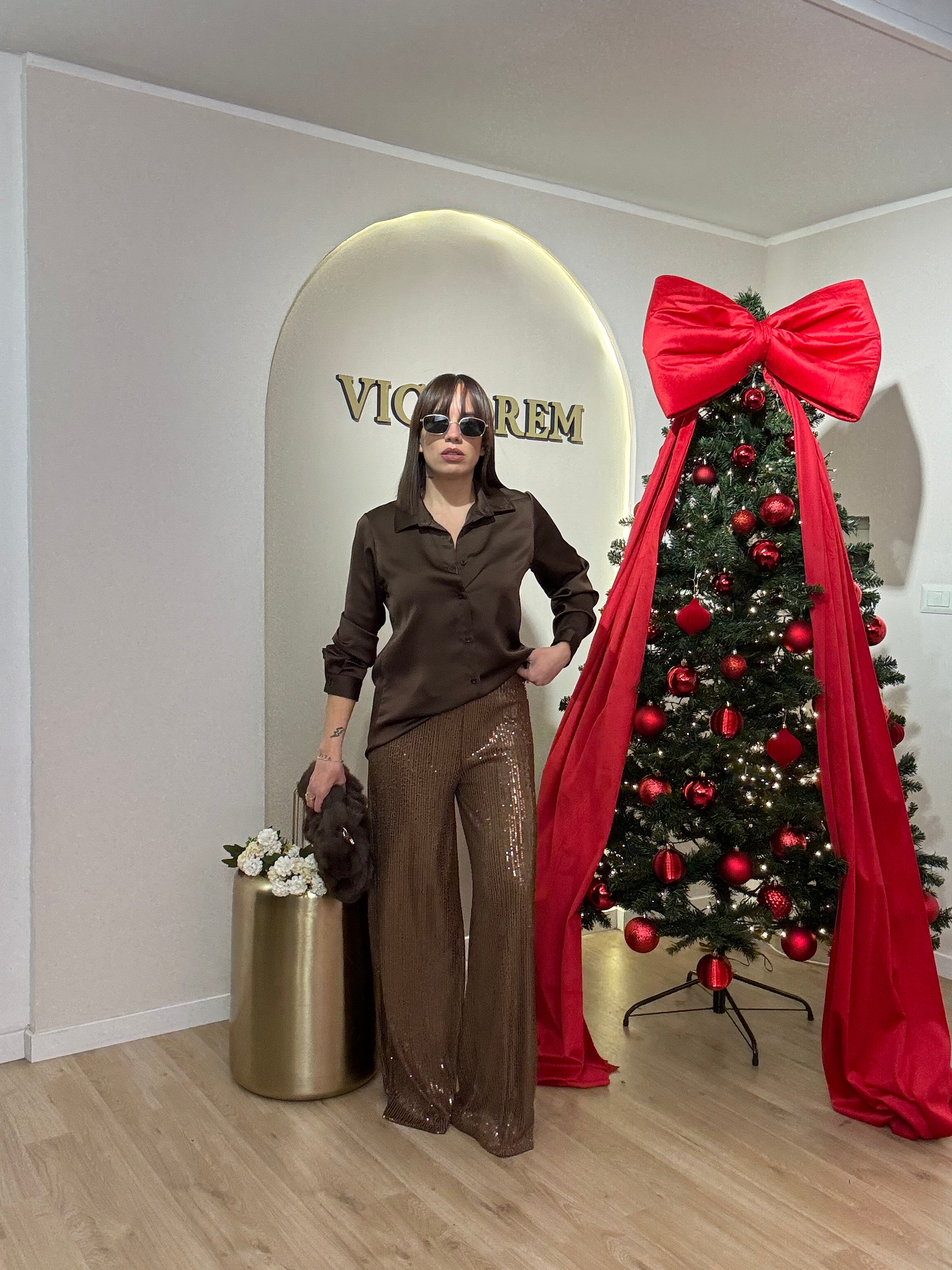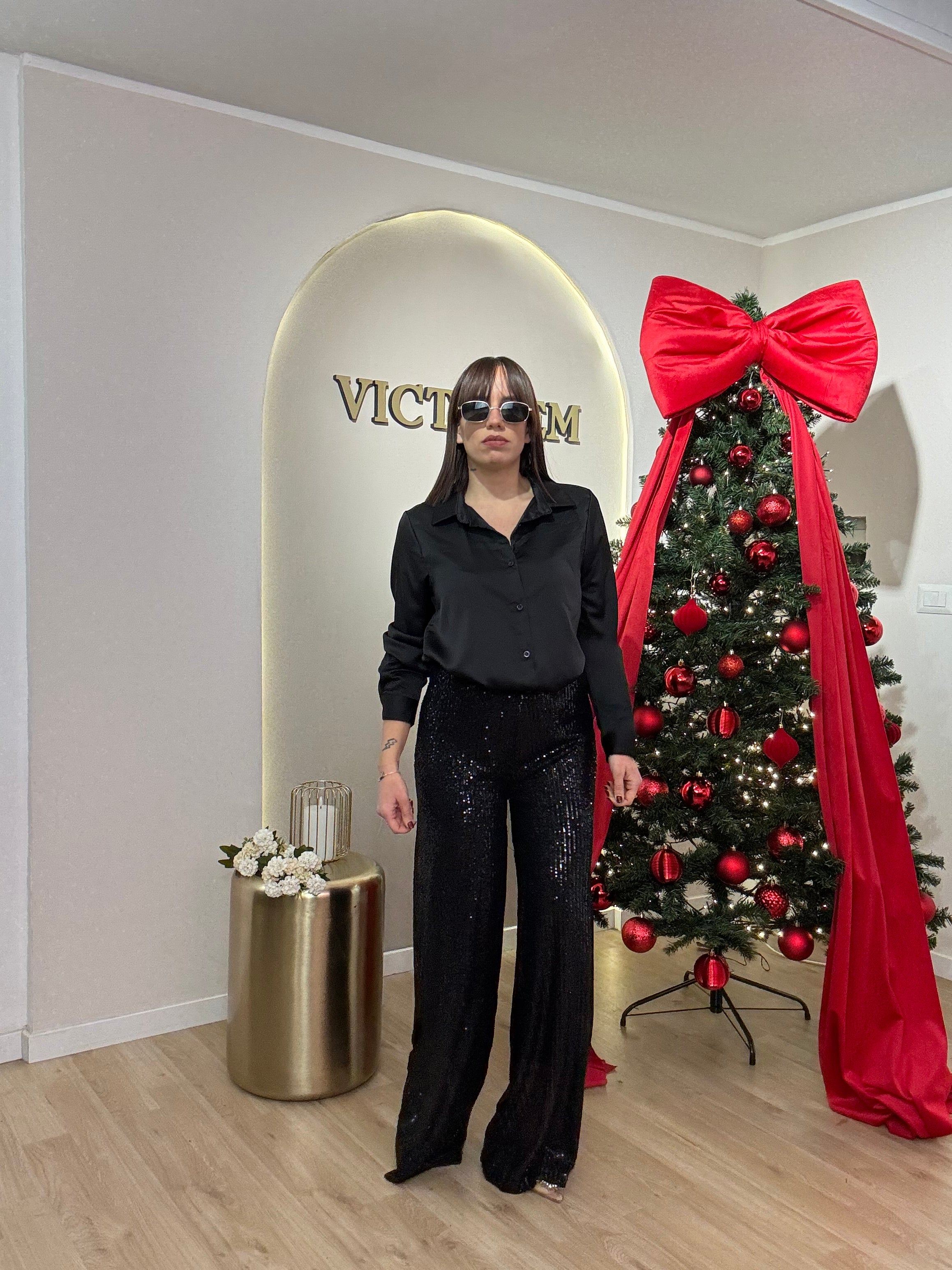 Pantalone in paillettes elasticizzato. Veste fino a una taglia 48