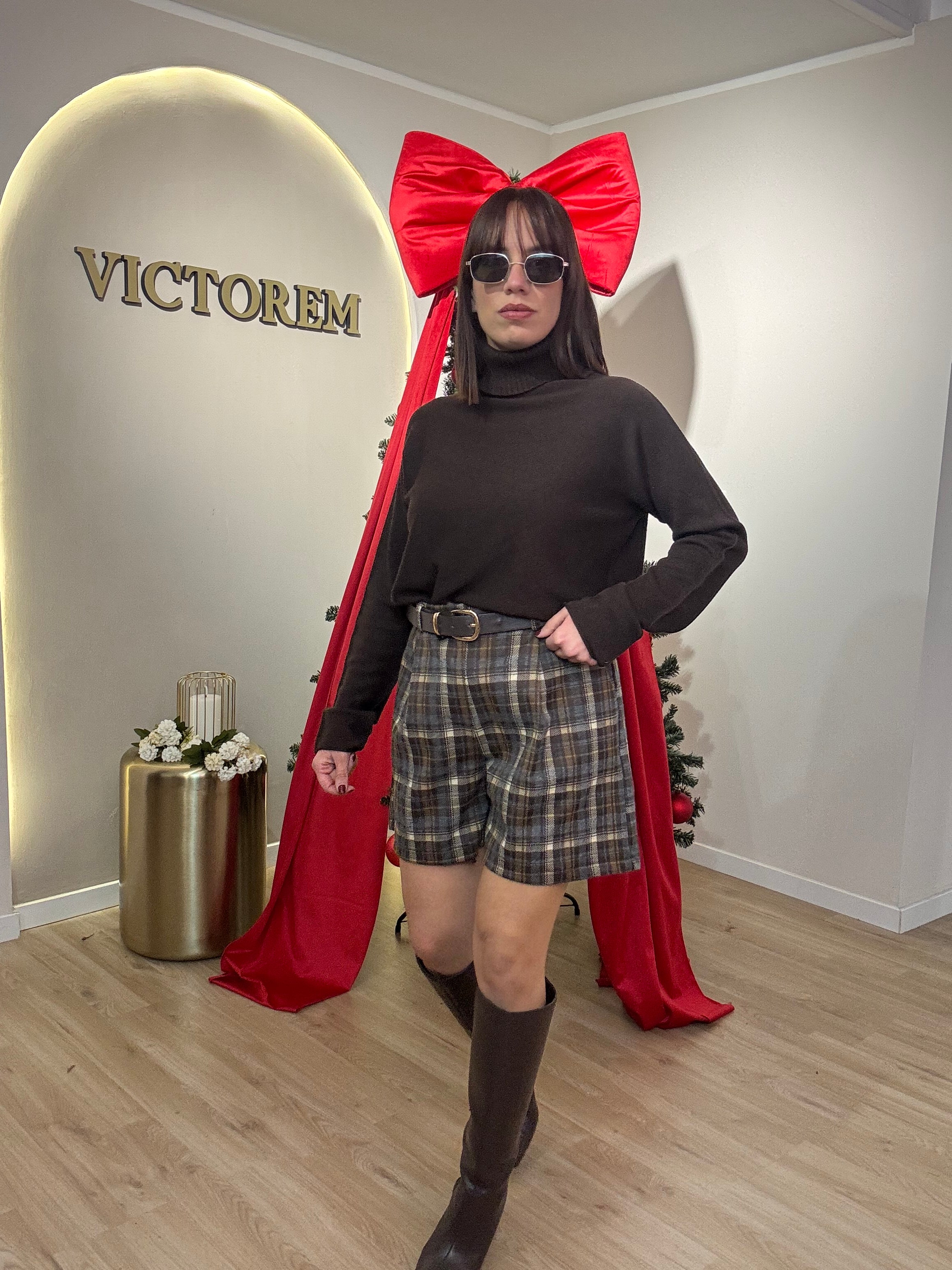 Bermuda quadroni con bottone e zip, elastico sul retro.