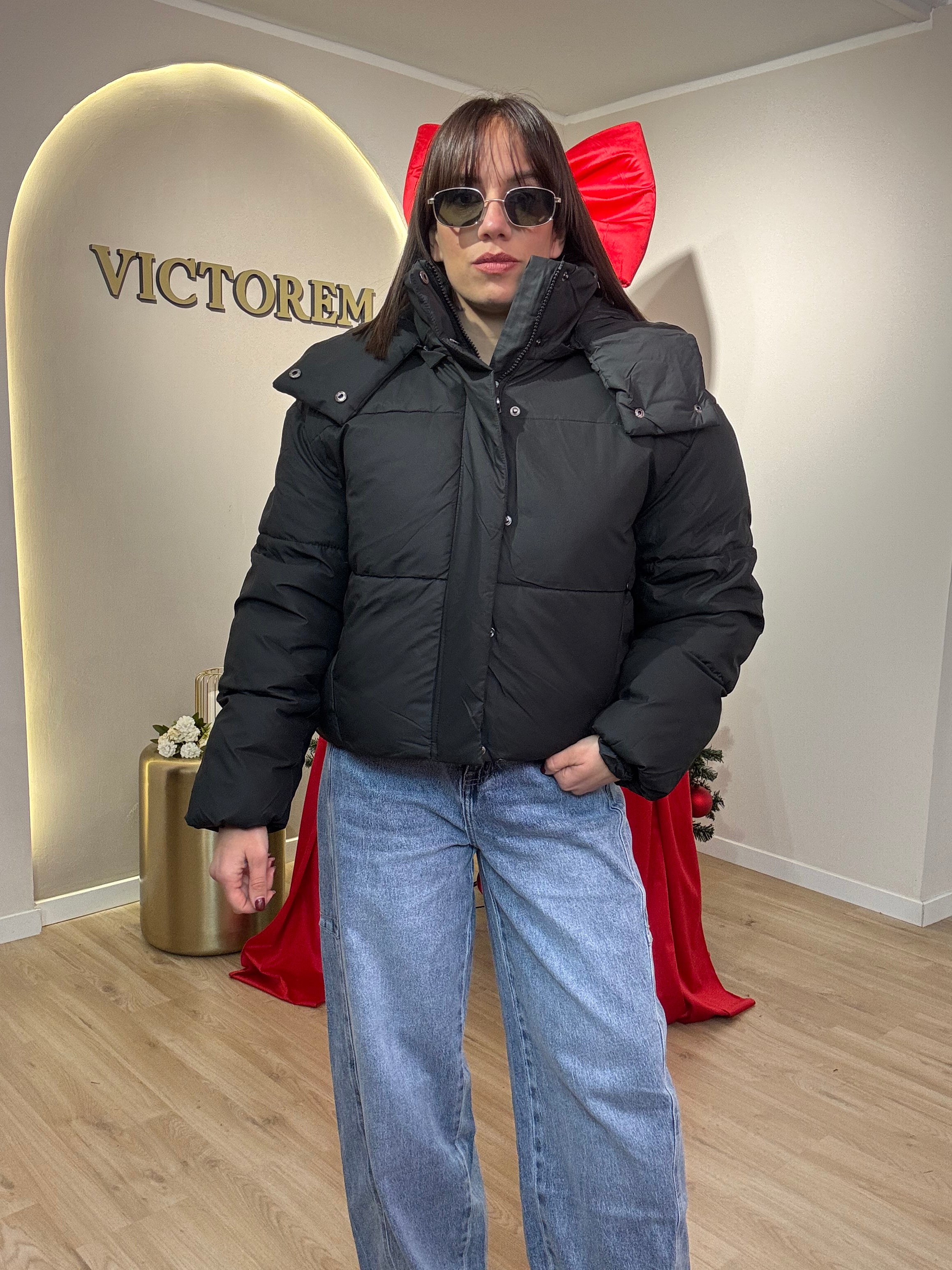 Bomber pesante imbottito con zip e cappuccio removibile.