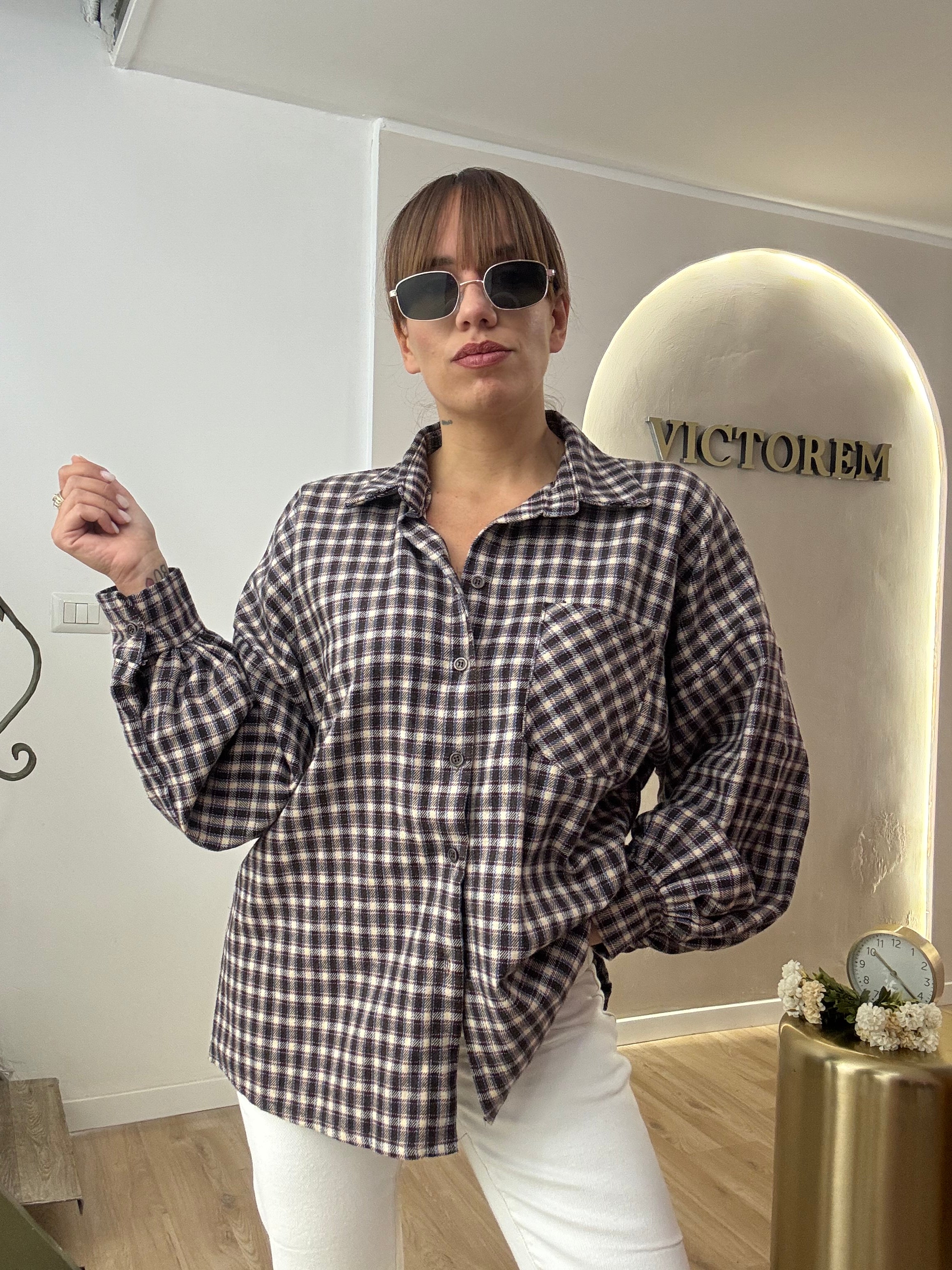 Camicia flanella a quadri, vestibilità over , fino ad una tg 48
