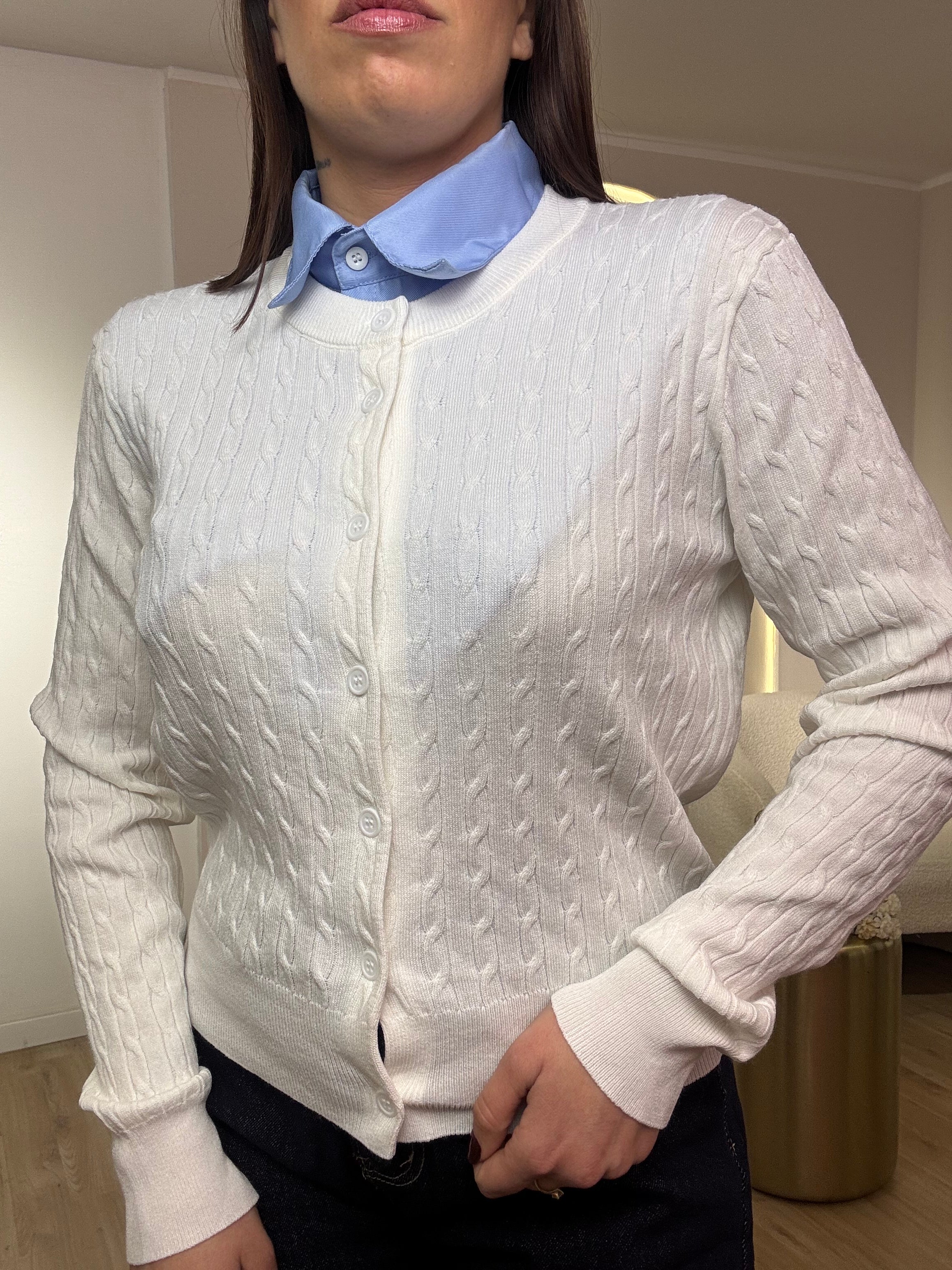 Cardigan girocollo treccia