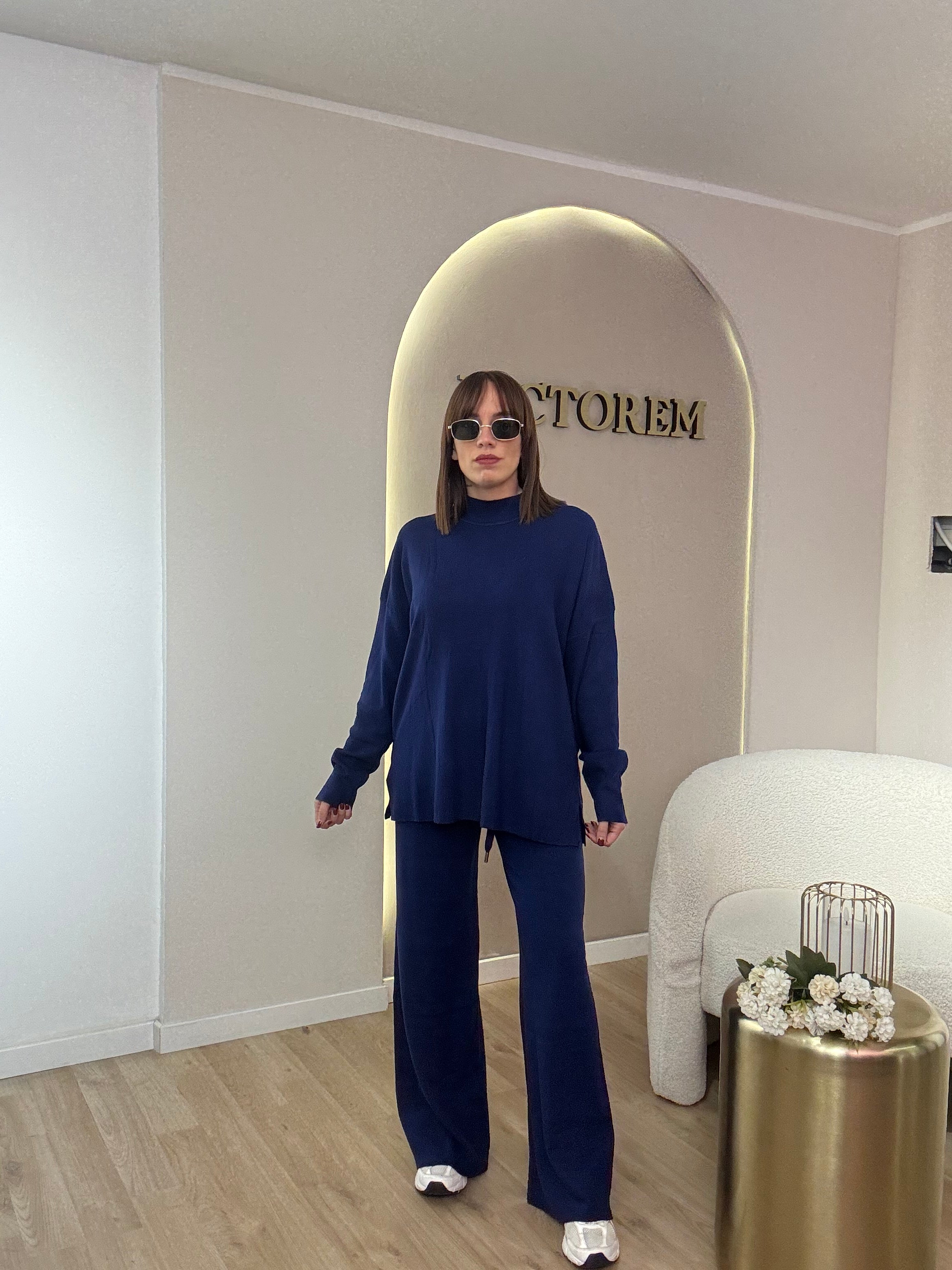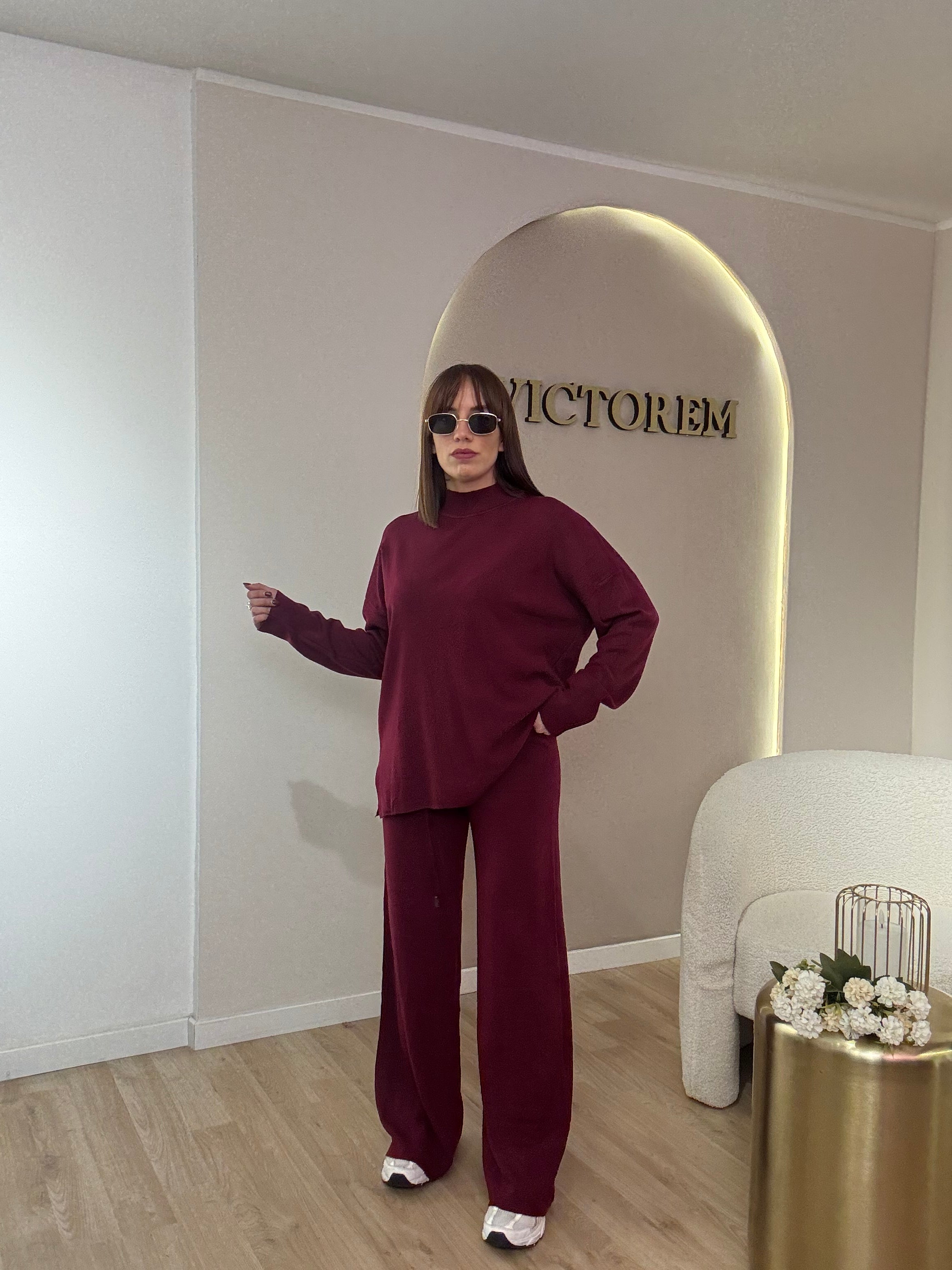 Coordinato lana rasata mezzo collo composto da pantalone con elastico e laccio e maglia lunga , veste fino ad una tg 46