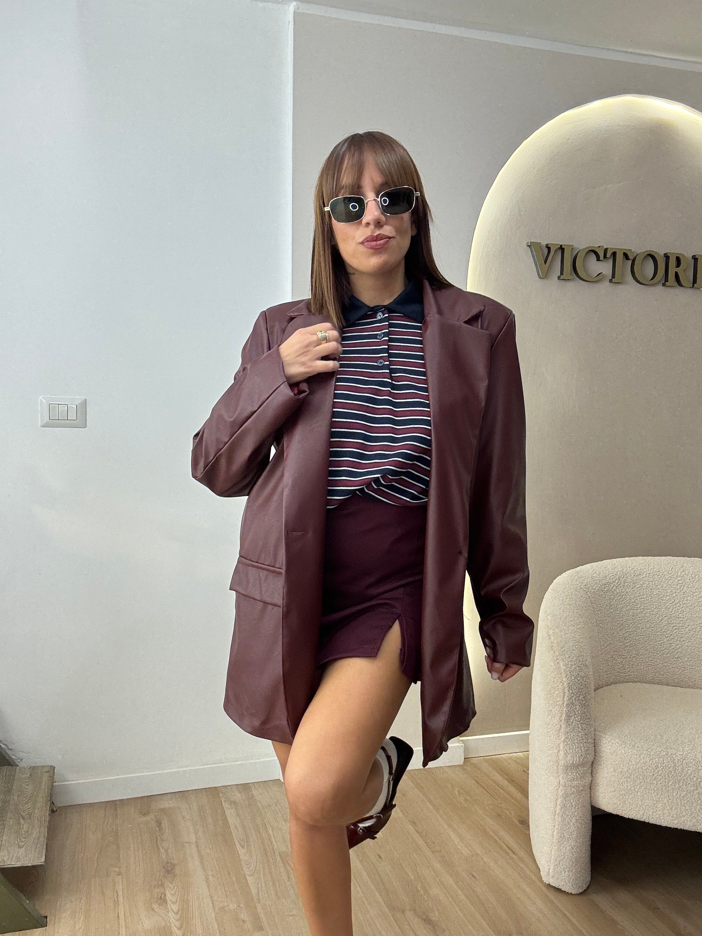 Giacca in ecopelle con spallina strutturata , veste fino ad una tg 46