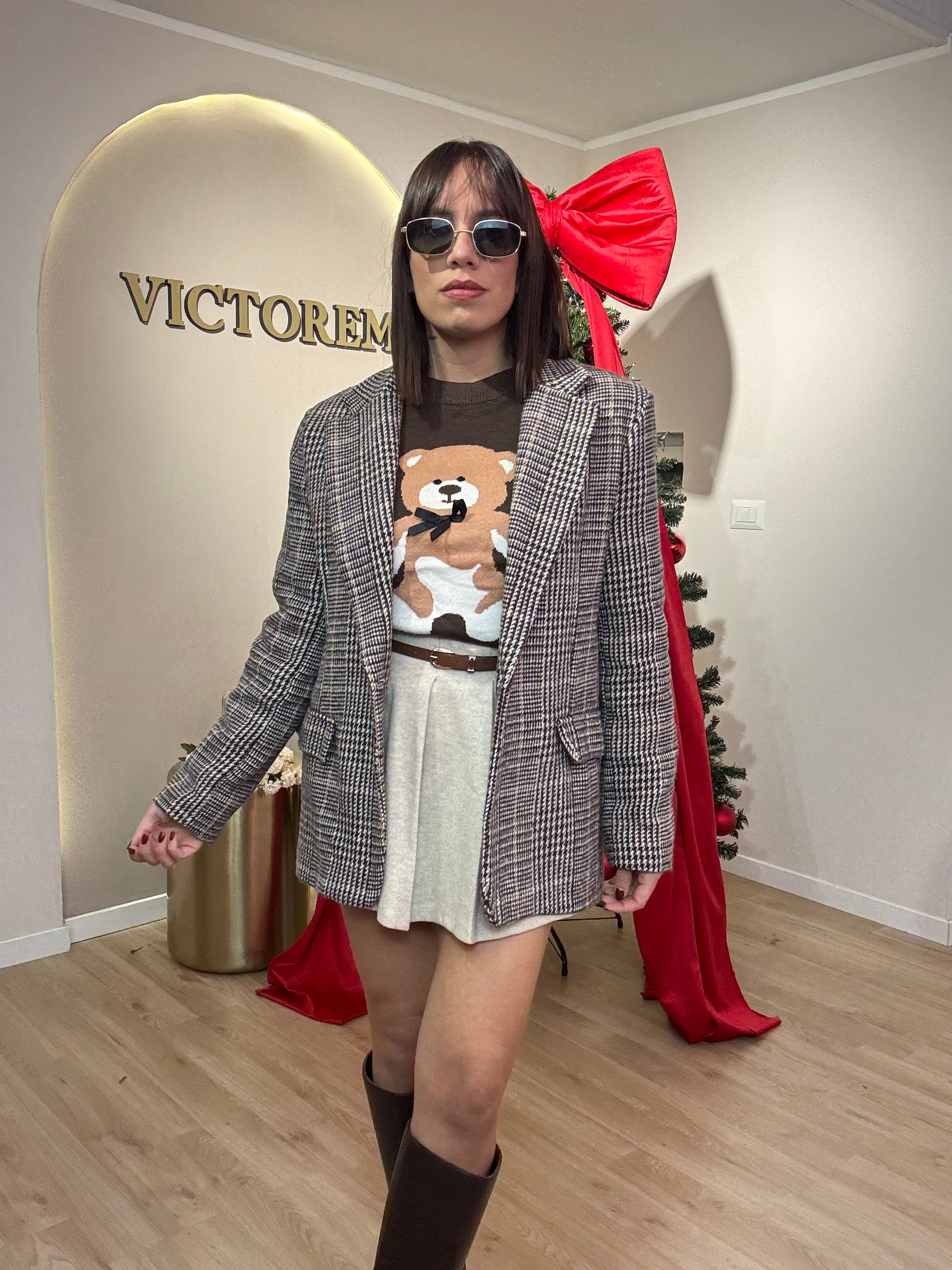 Giacca quadri con spallina preformata e bottone centrale. Veste fino a una taglia 46
