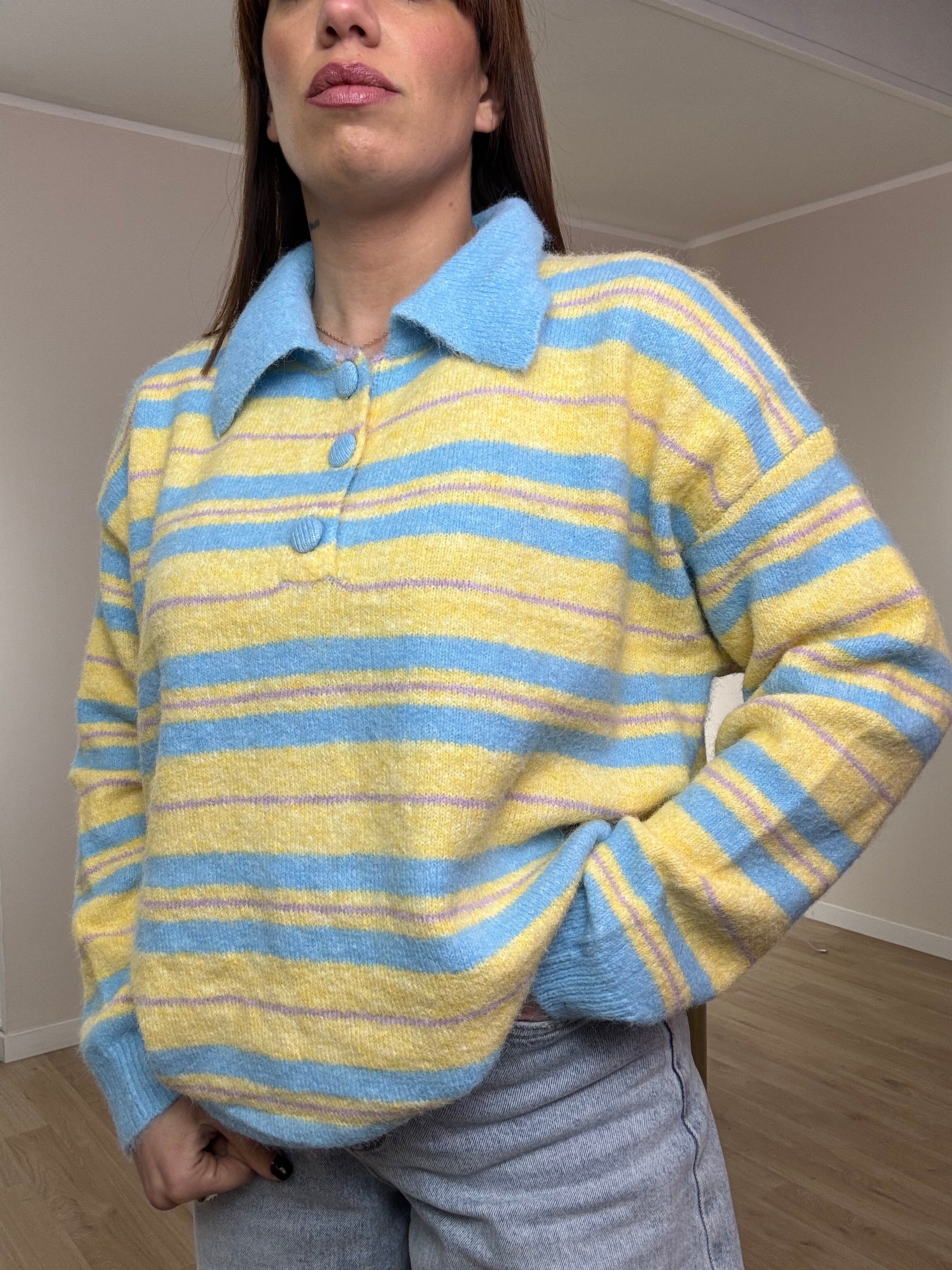 Maglia in lana grossa, modello polo . Vestibilità regolare fino a una taglia 48
