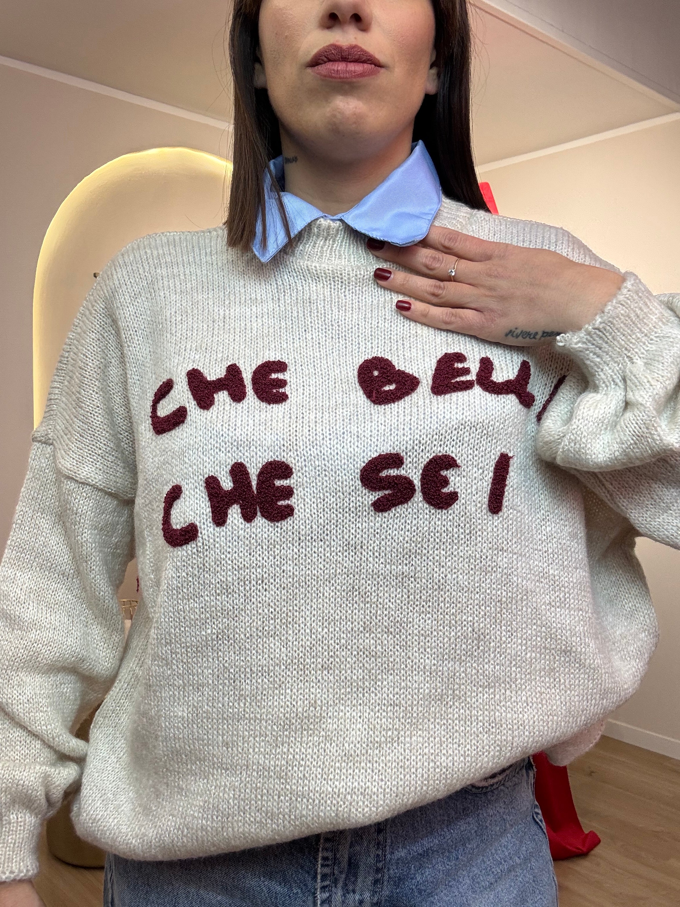 Maglia con scritta in rilievo in lana grossa, veste fino a una taglia 46