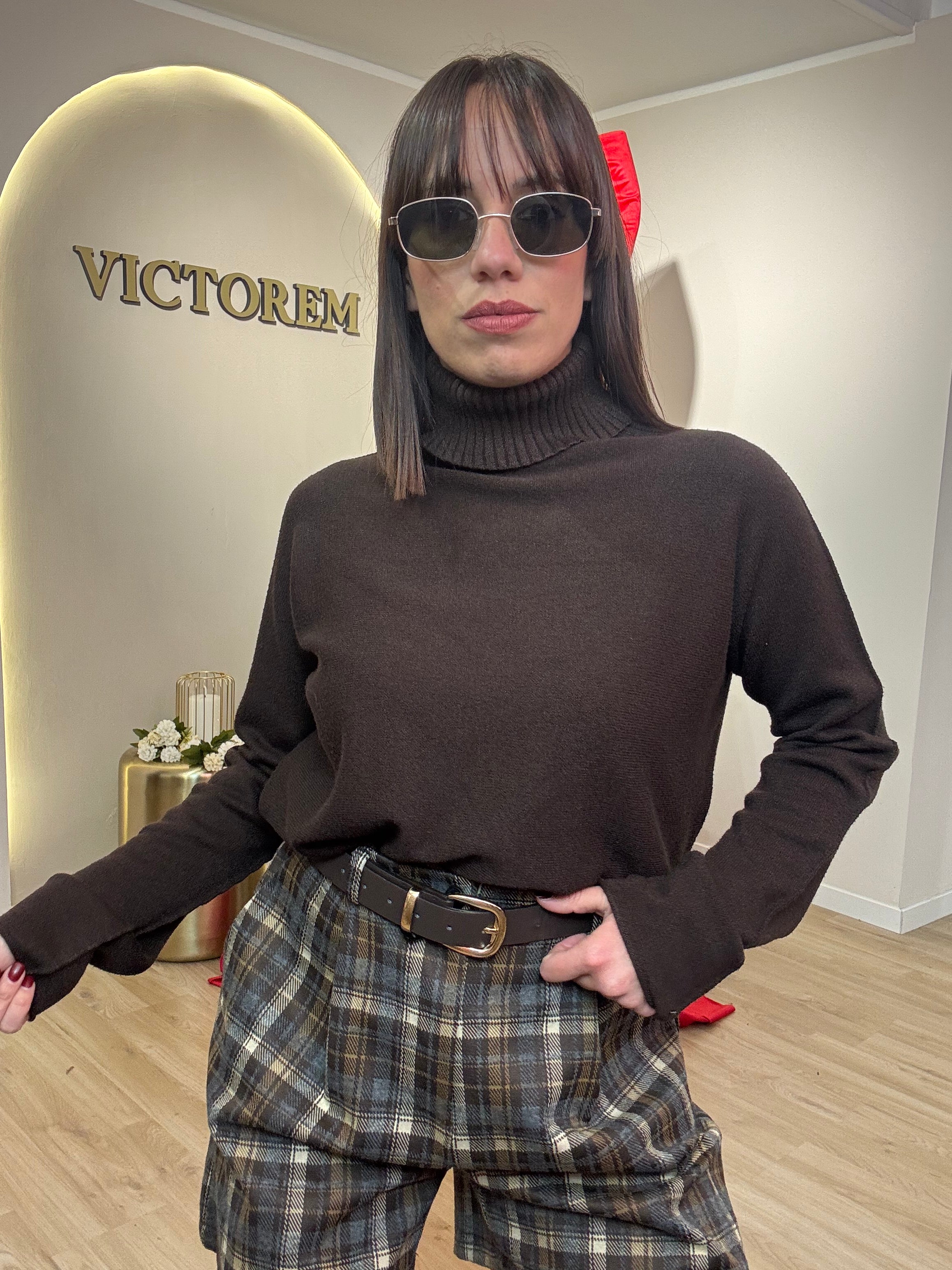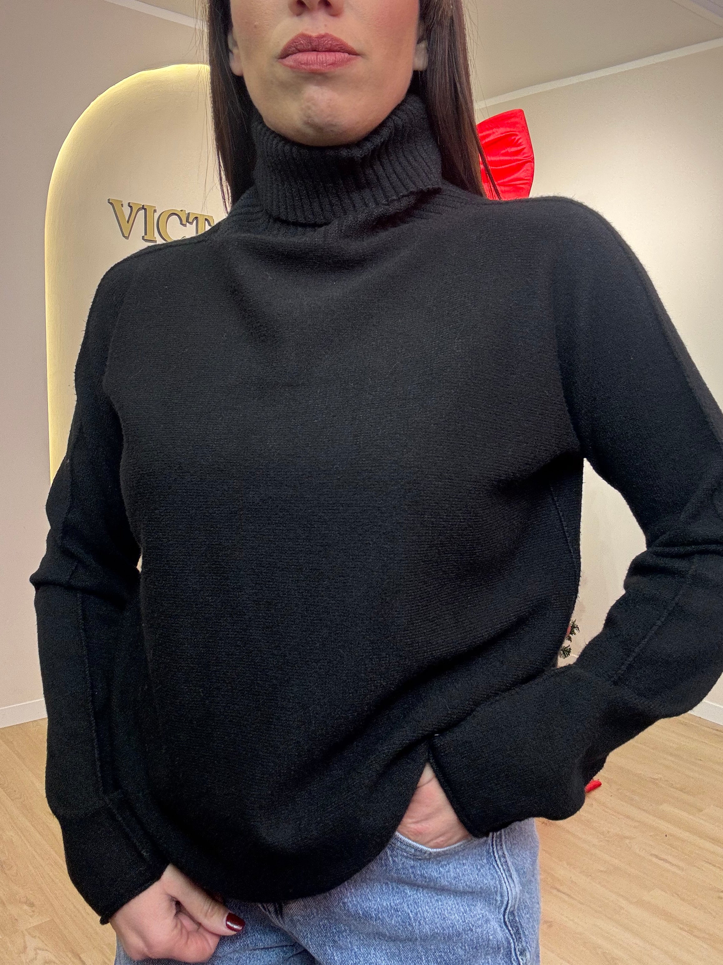Maglia lana rasata over collo alto, vestibilità fino a una taglia 48