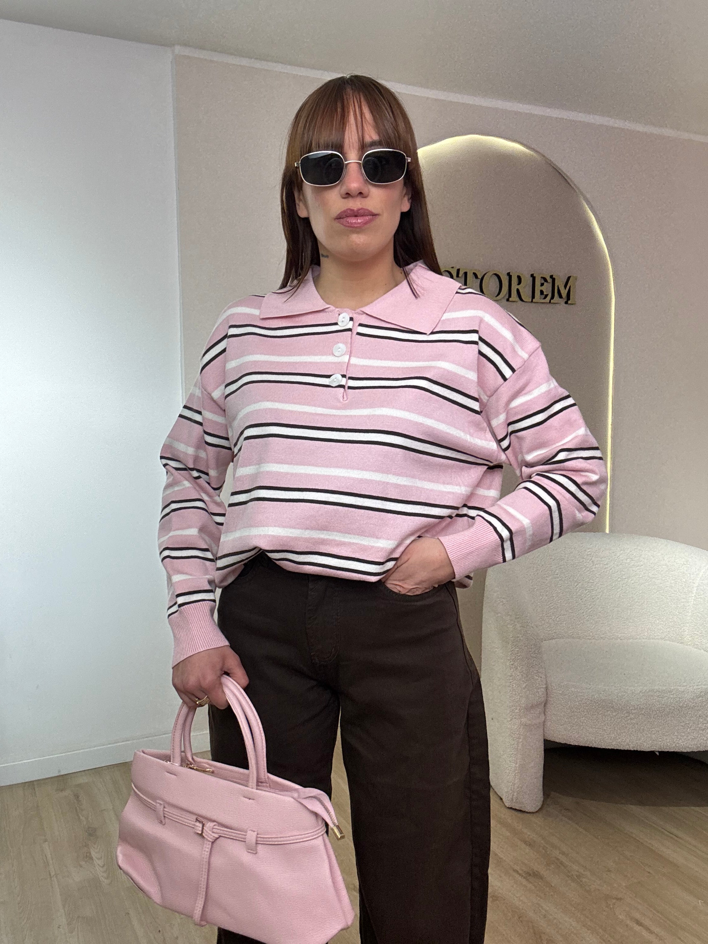 Maglia in lana rasata rigata , veste fino ad una tg 46