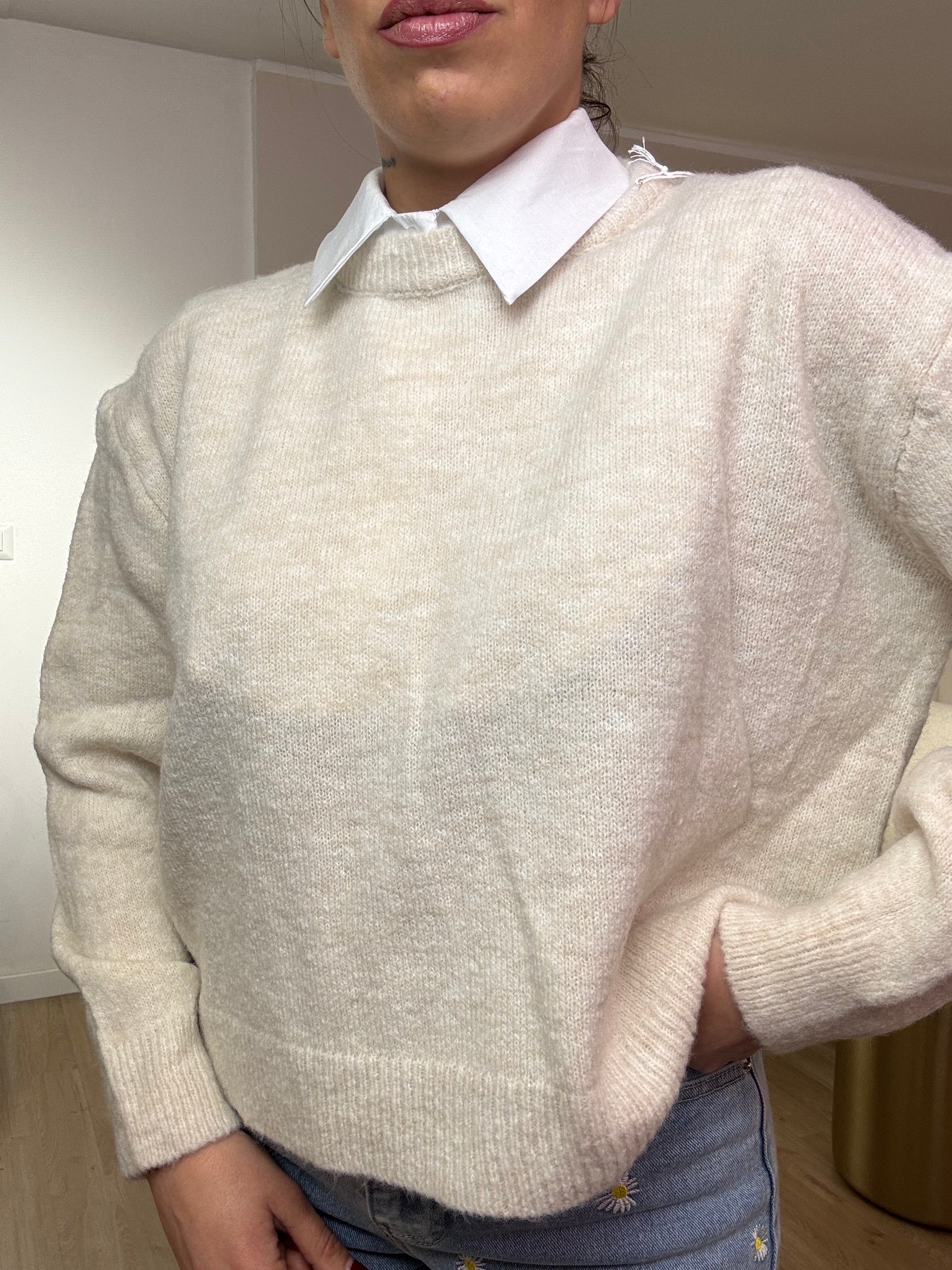 Maglia in lana pesante, girocollo.