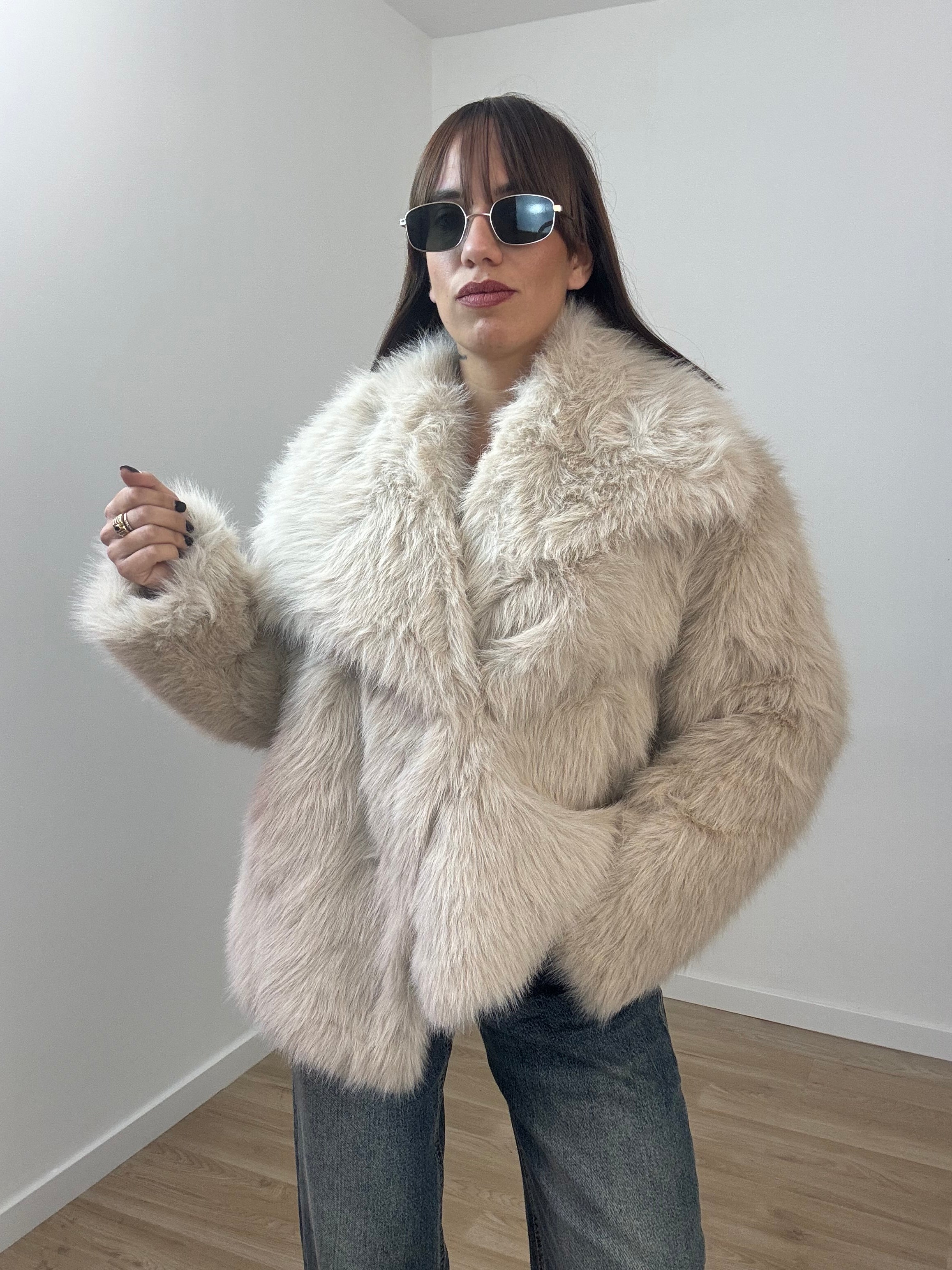 Ecofur con bottoni, vestibilità ampia ,  veste fino ad una tg 48
