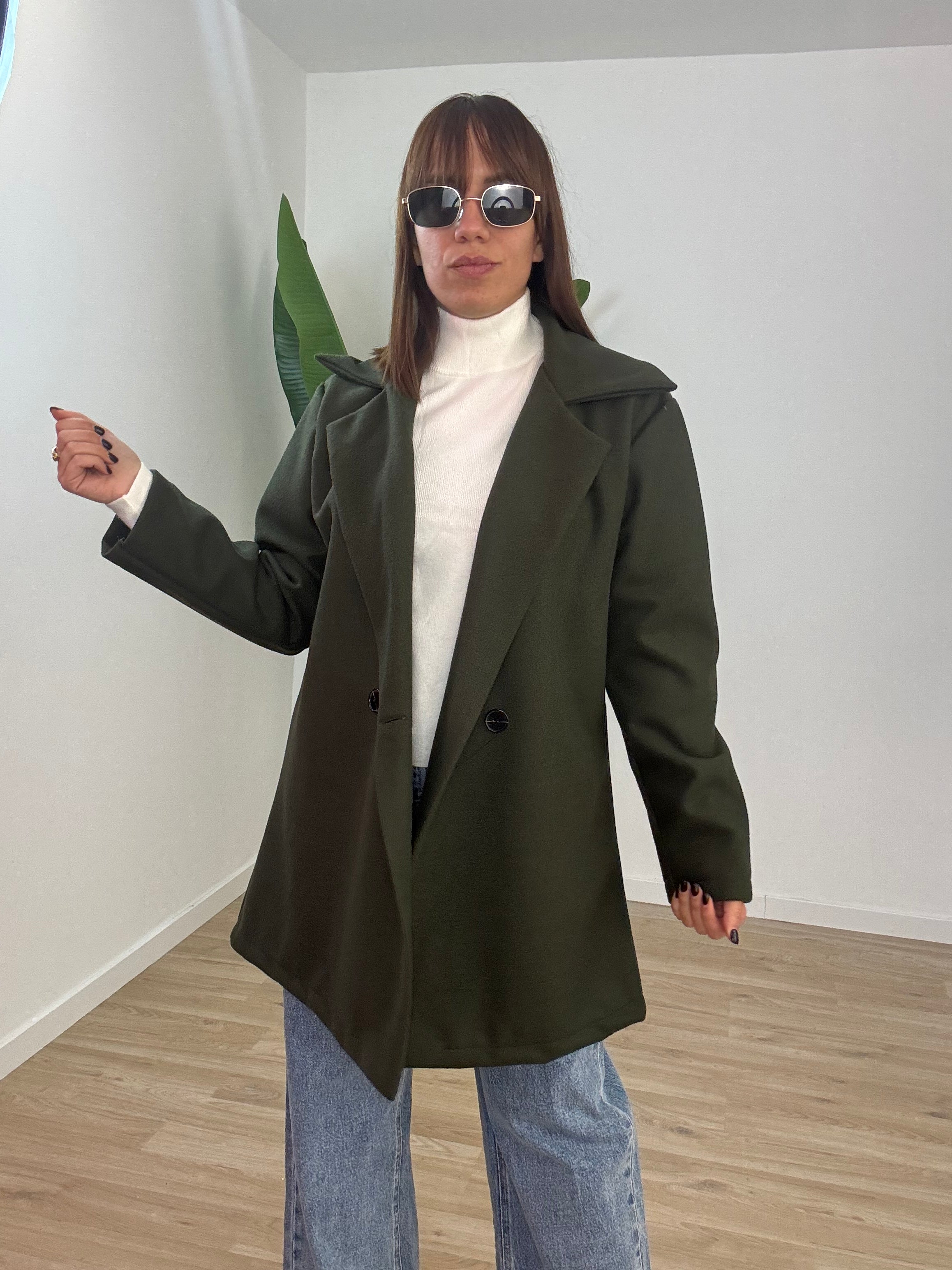 Cappottino in panno con doppio bottone , veste fino ad una tg 46