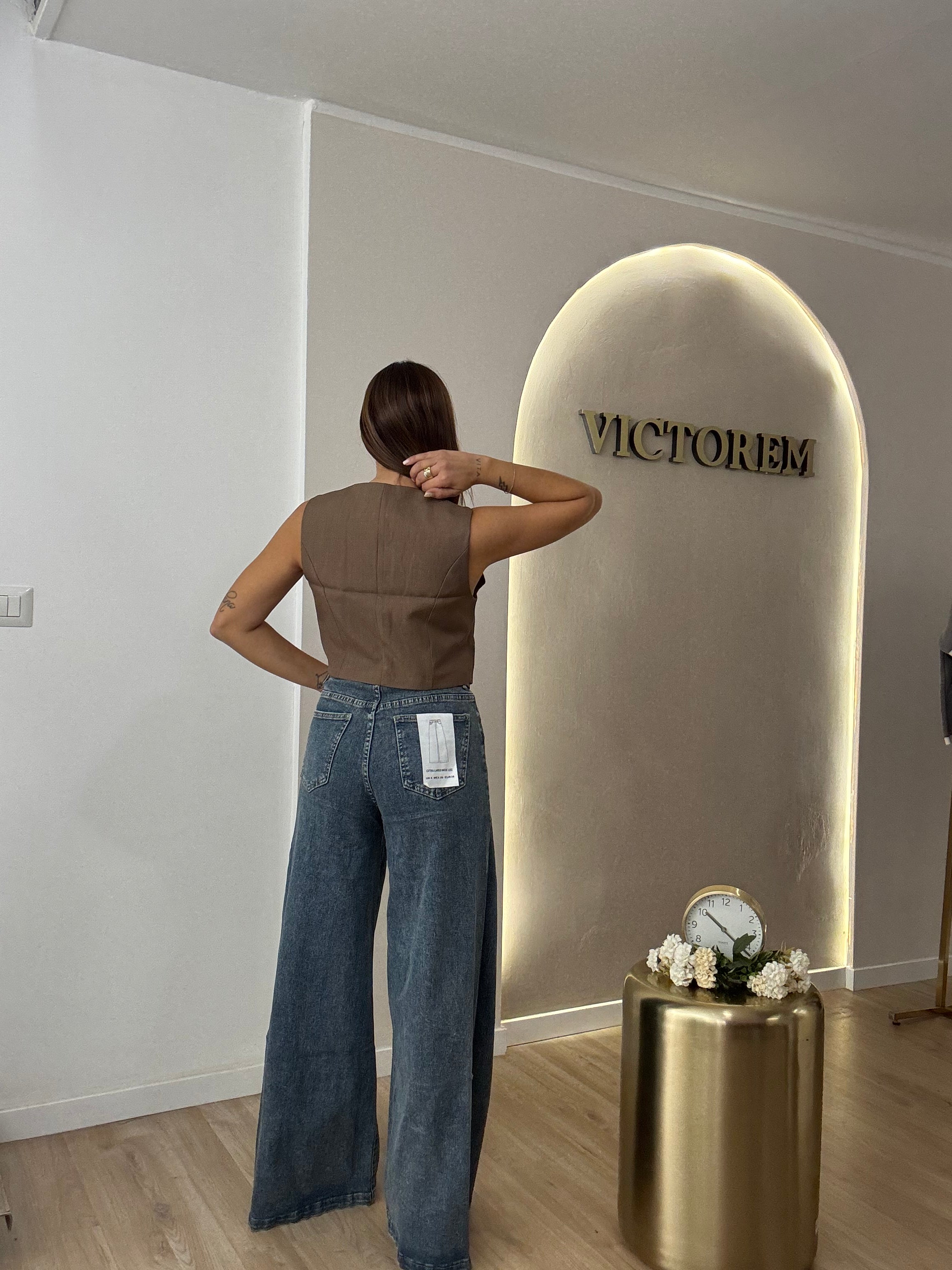 Jeans gamba ampia lavaggio sabbiato , taglia indossata in foto S