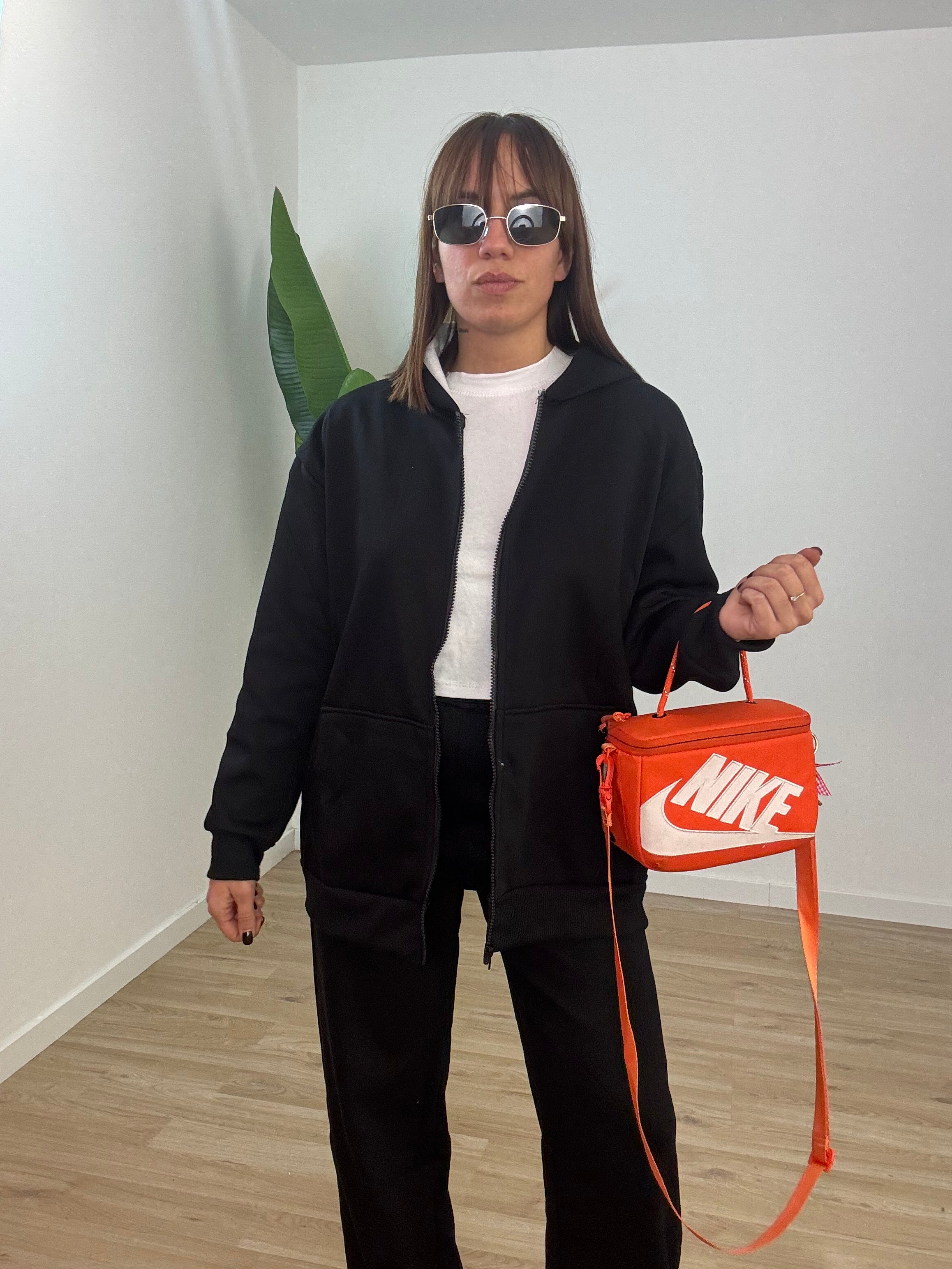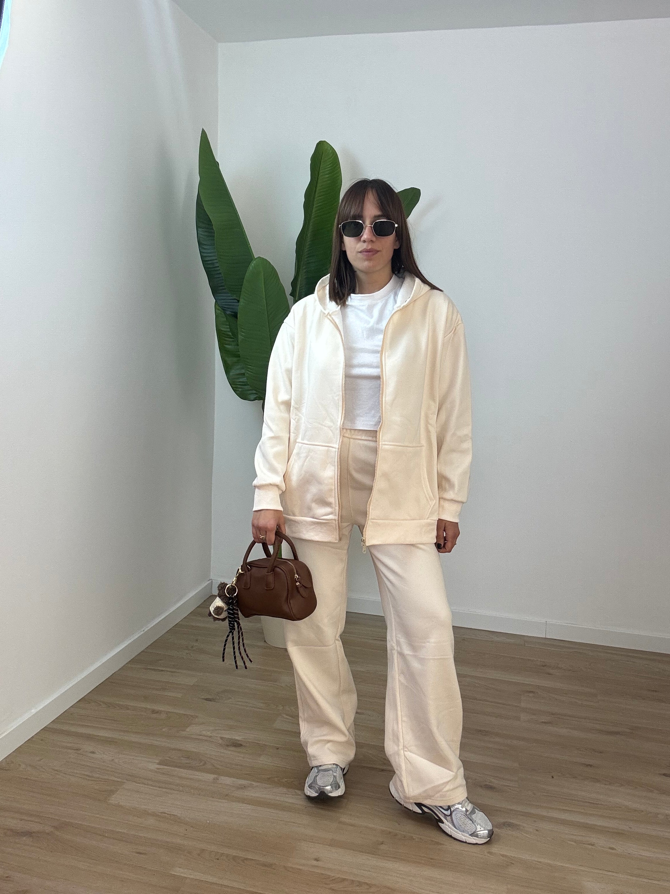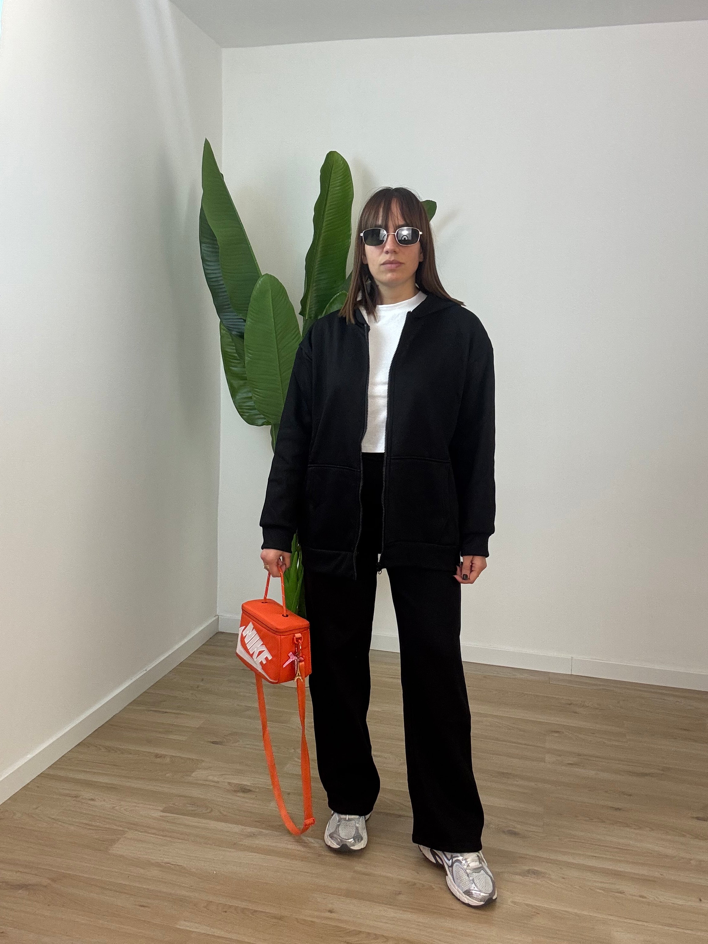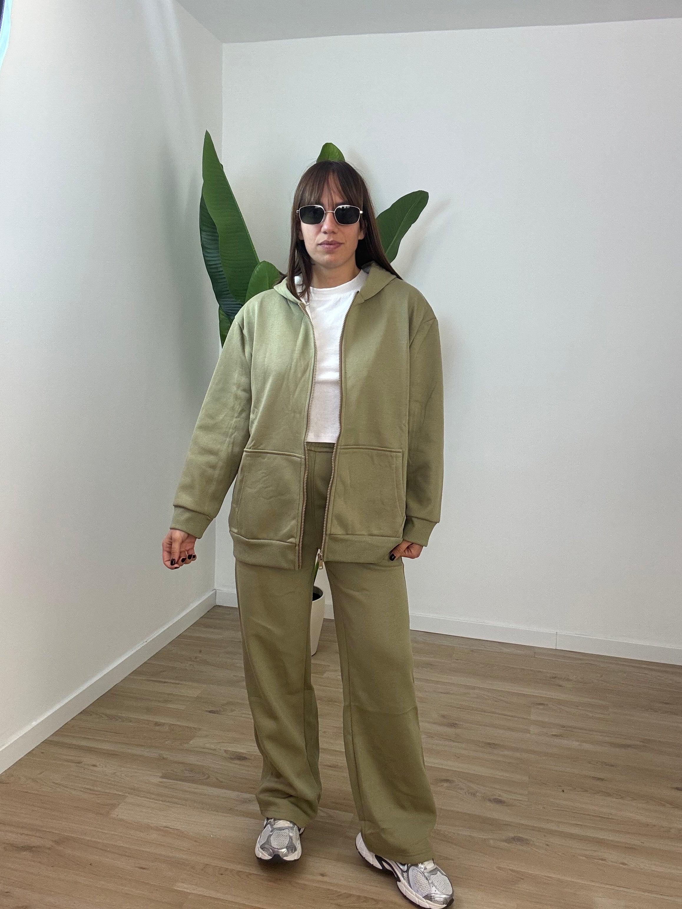 Tuta in pile composta da pantalone con elastico in vita e felpa con tasconi zip e cappuccio , taglia indossata in foto S/M